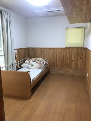 ベッドを使っていない時間の車椅子の置き場も忘れずに確保しました。